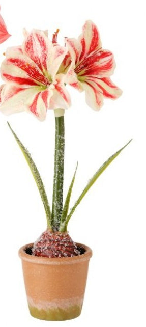 Brighten up any space with this 15" frosted potted mini amaryllis. Its delicate blooms and frosted pot add a fresh, wintry touch to your home or office. Compact and easy to care for, it makes a perfect gift or a cheerful accent for your decor.