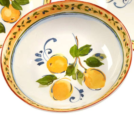Serve your favorite pasta or salads in Certified International’s “Italia” 5 pc. Pasta Set. Each bowl features beautiful images of lemons from the Amalfi Coast, designed by the artist Julie Paton. This ceramic serving set consists of 1 pc 12.25” Dia. X 3 “H Large bowl and 4 pcs. 8” Dia. X 2 “H Individual bowls. Sold in an attractive gift box, great for shower, hostess or housewarming gifts.