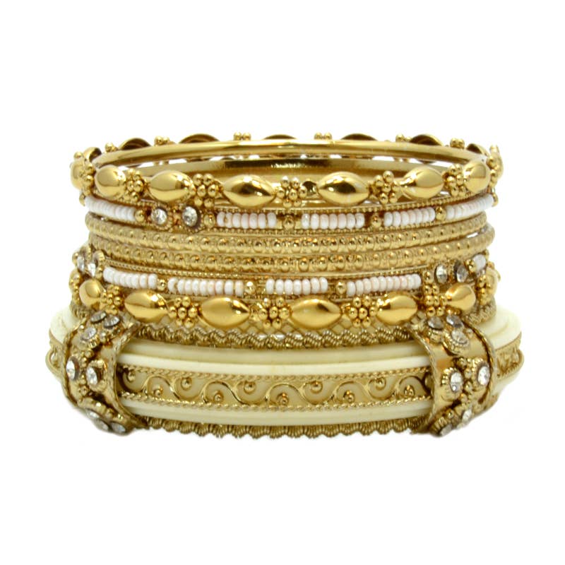 Indian Bangle Bracelet 7pc in Ivory resin crystals