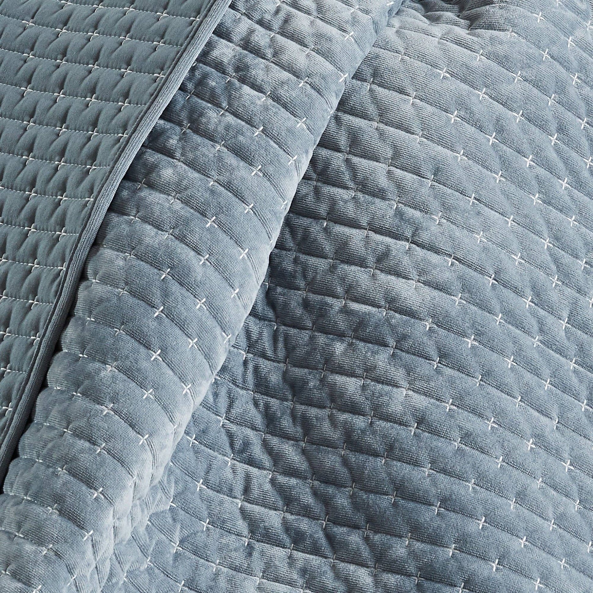 The Velvet Stitch Reversible Throw by Levtex Home is inspired by a luxurious retreat filled with rich fabrics. Offered in a range of stylish colors, this design will immediately transform any room in your home. This throw features a rich velvet with white cross stitch throughout on the front, reversing to a solid back. The Throw (50x60in.) has a microfiber front and back, filled with a cotton-rich filler, and is machine washable. Enjoy this for years to come!