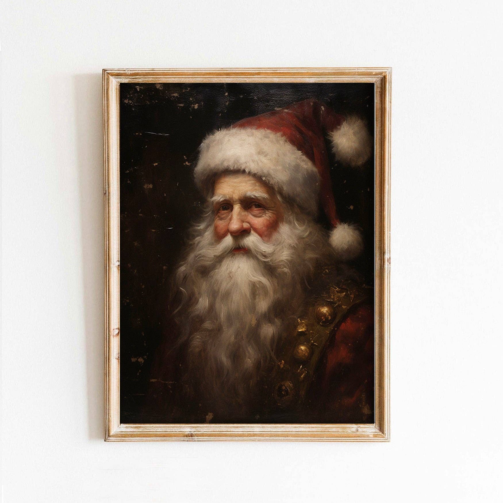 Victorian Santa Claus Portrait on Black Christmas Art Print