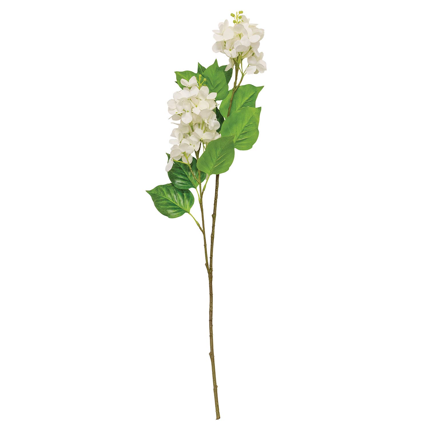 Add a classic floral accent to the farmhouse with the White Hydrangea Bundle Spray. This elegant spray has ivory-colored fabric hydrangea blooms accented with light green plastic bulbs. Several stems adorned with faux leaves and flowers emerge from a natural-looking plastic stem. Measuring 29" high, easily pair this spray with a wide array of florals to make a great seasonal accessory for spring and summer.